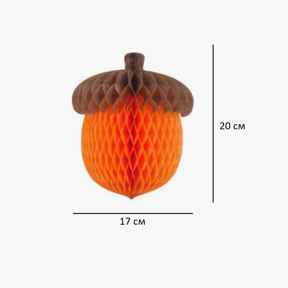 Бумажное украшение "Желудь" 20см — сочный и праздничный элемент для оформления стола, фотозон, витрин и интерьера. Поставляется в сложенном виде, легко раскрывается в пышную объёмную форму.