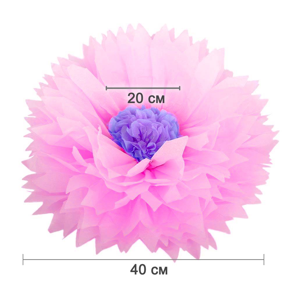 Бумажный цветок 40 см розовый+светло-сиреневый