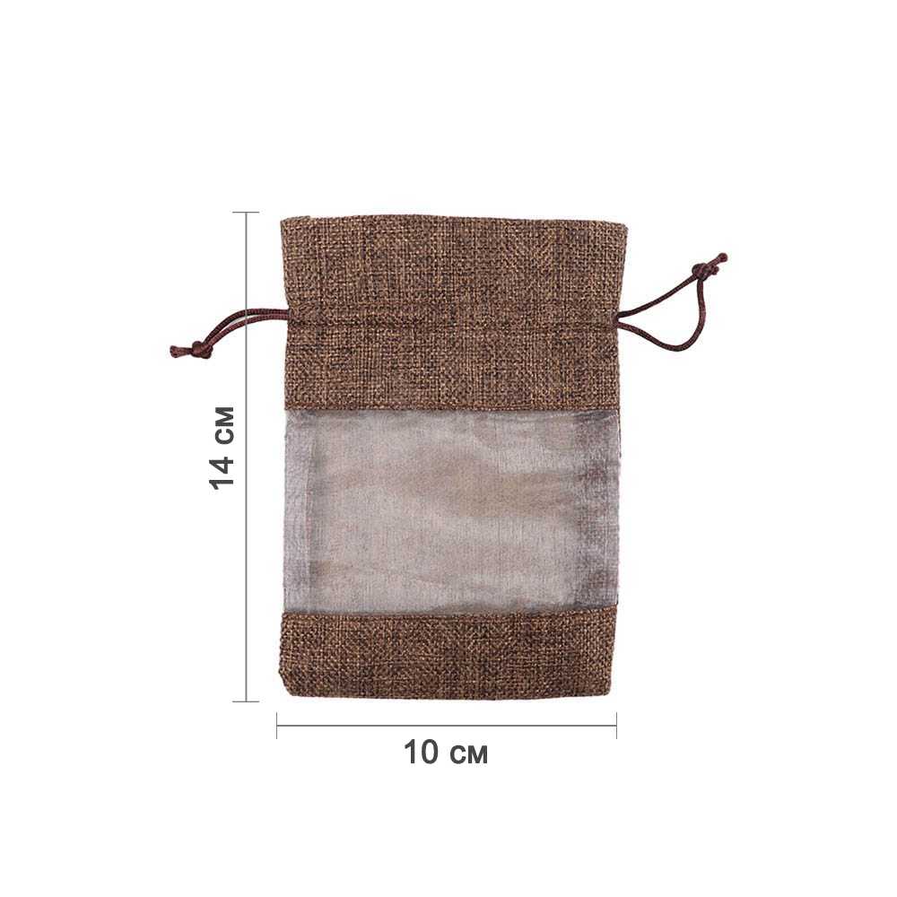Мешочек из мешковины и органзы 10х14 см темно-коричневый
