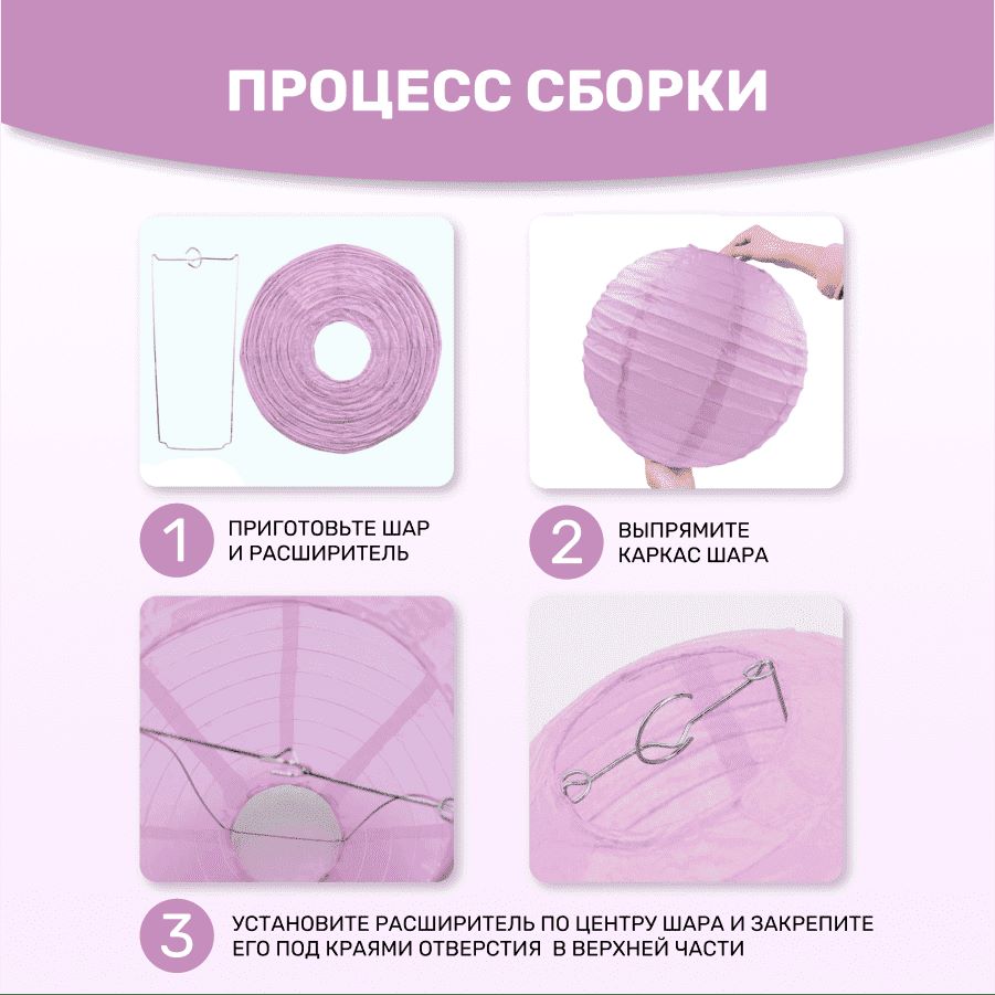 В комплект входит 8 бумажных фонариков и лента атласная.
