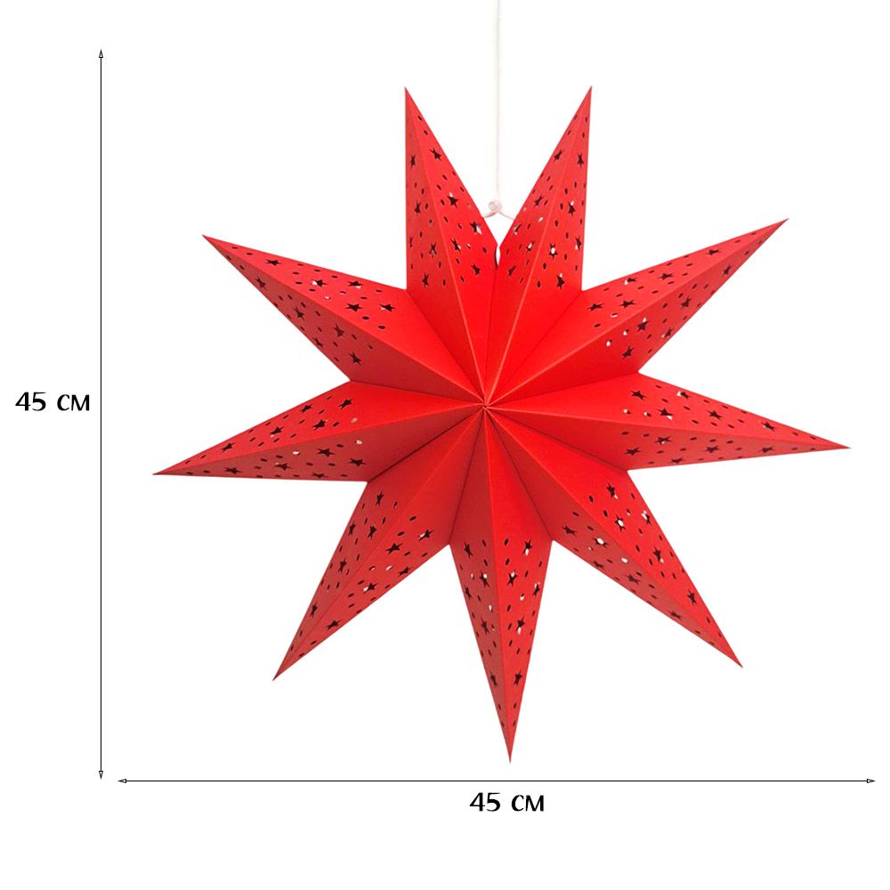 Звезда девятиконечная 45 см, точки и звездочки, красный